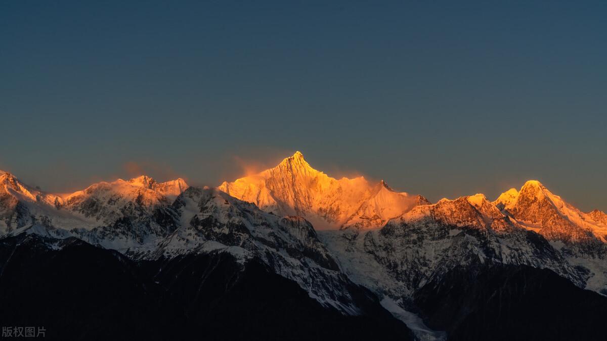 梅里雪山巍峨雄浑、冷峻圣洁,有一种震撼心灵之美,尤其是日照金山更是很多人梦寐以求却难得一见的胜景。