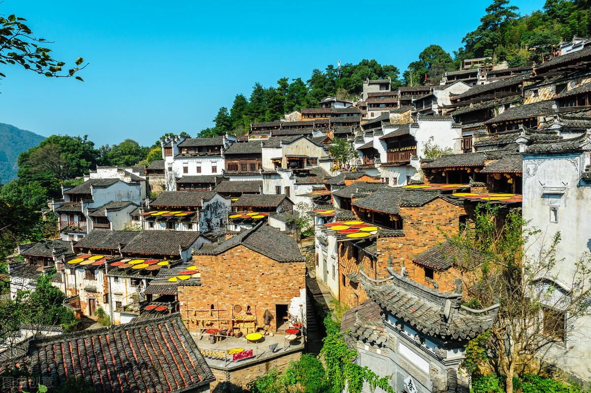 篁岭建在海拔500米的山坡上,这里的一百多栋明清古徽州民居,有着典型的粉墙黛瓦马头墙,木雕、砖雕精美,犹如一幅幅意境深远的山水风景画,呈现出天人合一、世所罕见的梦幻田园乡景,