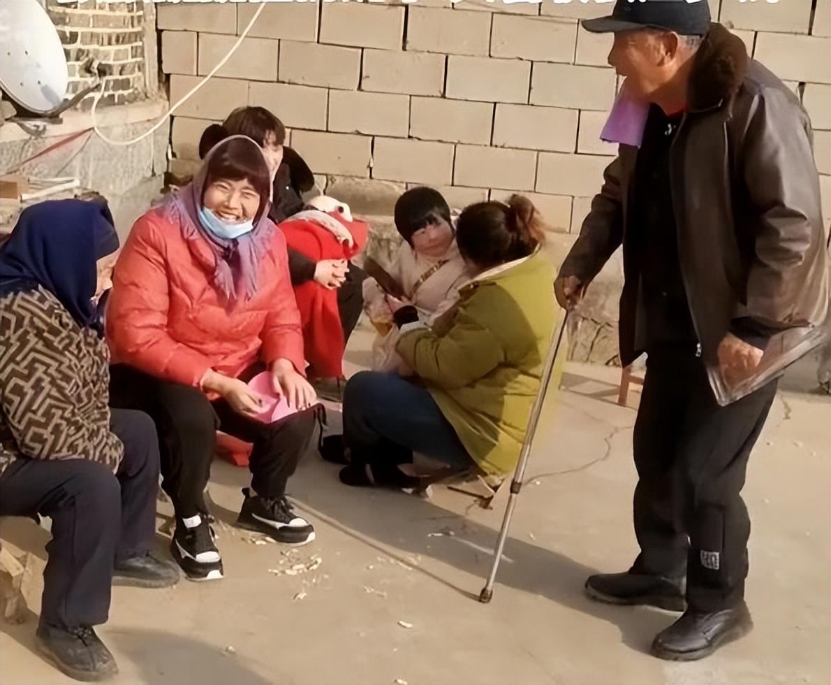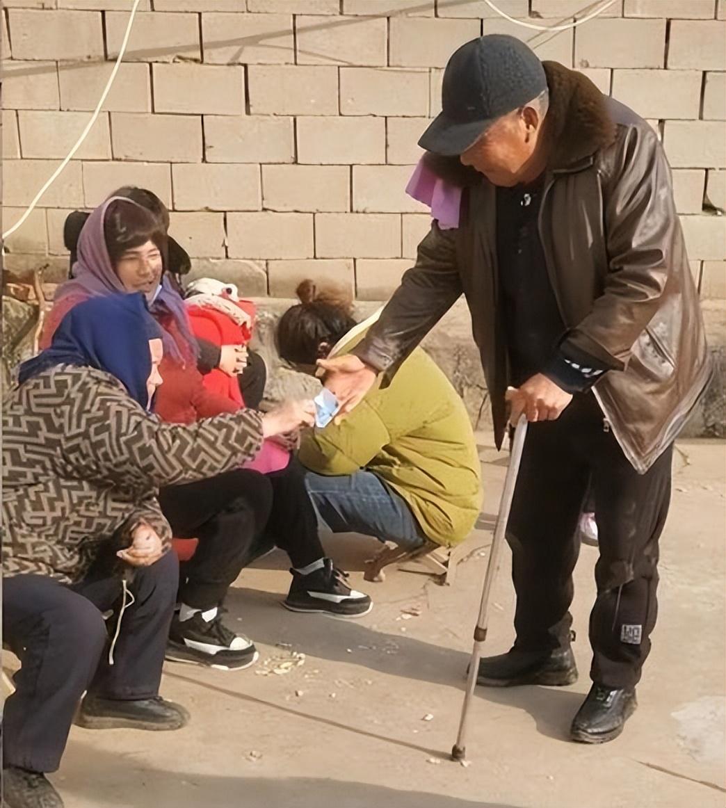 老人拄着拐杖,颤颤巍巍走向岳母,然后把拐杖放在地上,双手扶地认真跪下,给岳母磕了3个头,岳母看到这样的情景,心里乐开花,然后岳母从袋子里掏出压岁钱给他,老人开心地接过压岁钱,跟岳母说谢谢,岳母也跟老人说新年好,随后,老人把压岁钱放到口袋里,两人就继续聊天,坐在一起晒太阳,还聊起了家常,两人互相祝福新年快乐,两人的心情都十分好。